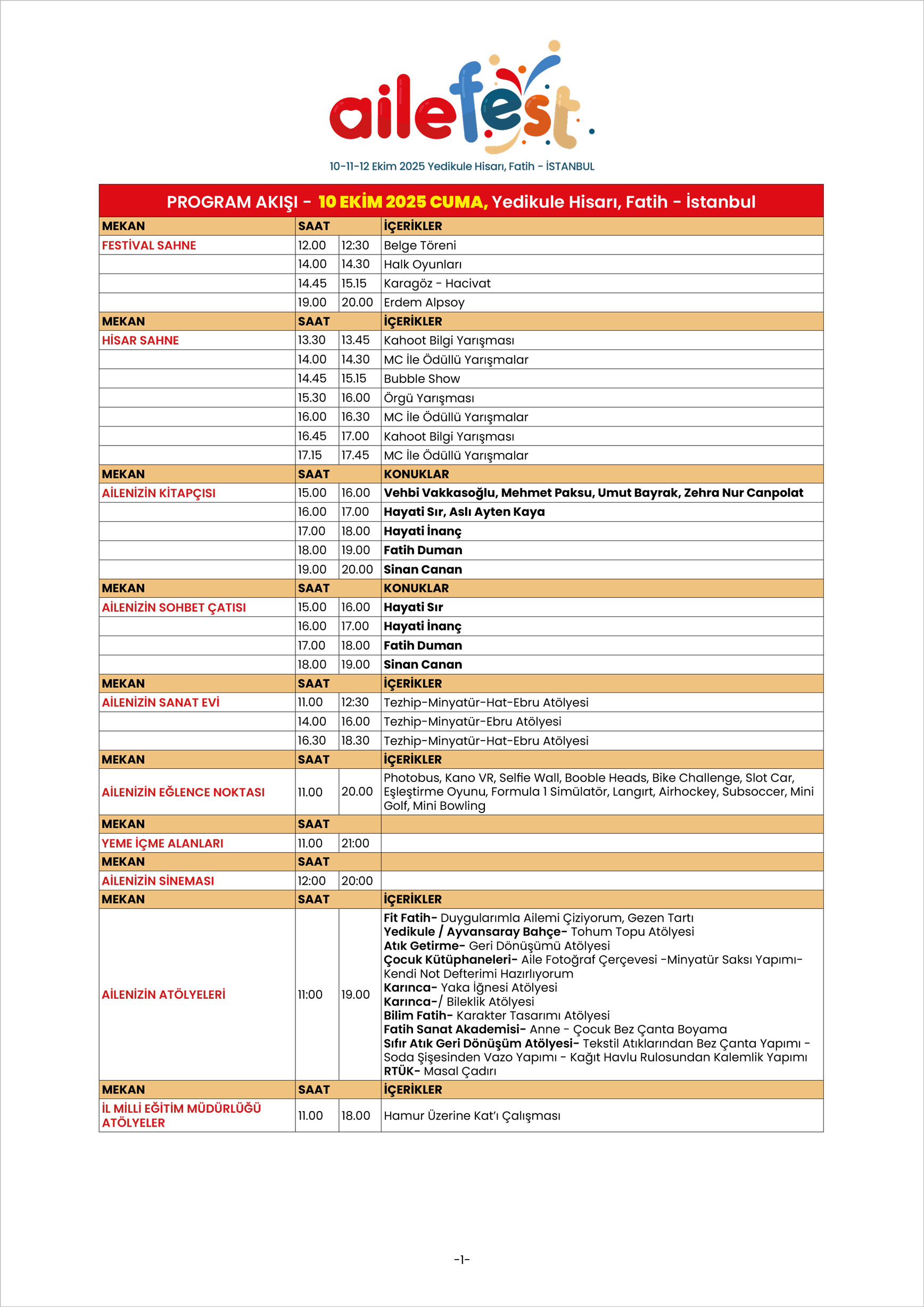 T.C. Aile ve Sosyal Hizmetler Bakanlığı, T.C. Kültür ve Turizm Bakanlığı, T.C. Milli Eğitim Bakanlığı, T.C. İletişim Başkanlığı, İstanbul Valiliği ve RTÜK’ün destekleriyle 10-11-12 Ekim 2025 tarihlerinde İstanbul’un simge yapılarından Yedikule Hisarı’nda gerçekleştirilecek. Üç gün sürecek bu büyük buluşmada 50.000’i aşkın katılımcının bir araya gelmesi bekleniyor.